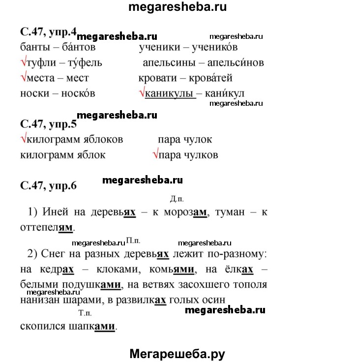 Подробный решебник (ГДЗ) по Русскому языку за 4 (четвертый) класс проверочные работы - готовый ответ страница - 47. Авторы учебника: Канакина. Издательство: Просвещение 2017-2023.