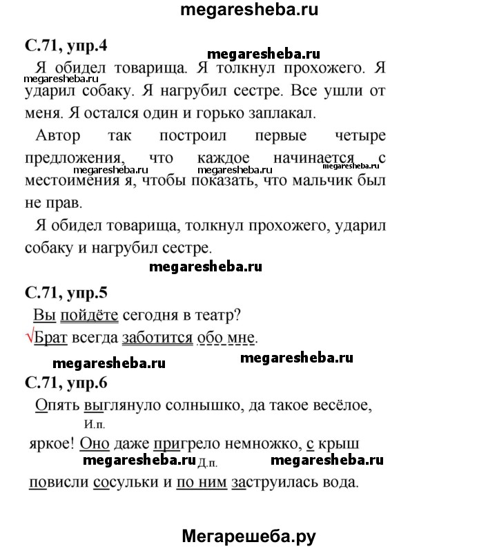 Подробный решебник (ГДЗ) по Русскому языку за 4 (четвертый) класс проверочные работы - готовый ответ страница - 71. Авторы учебника: Канакина. Издательство: Просвещение 2017-2023.