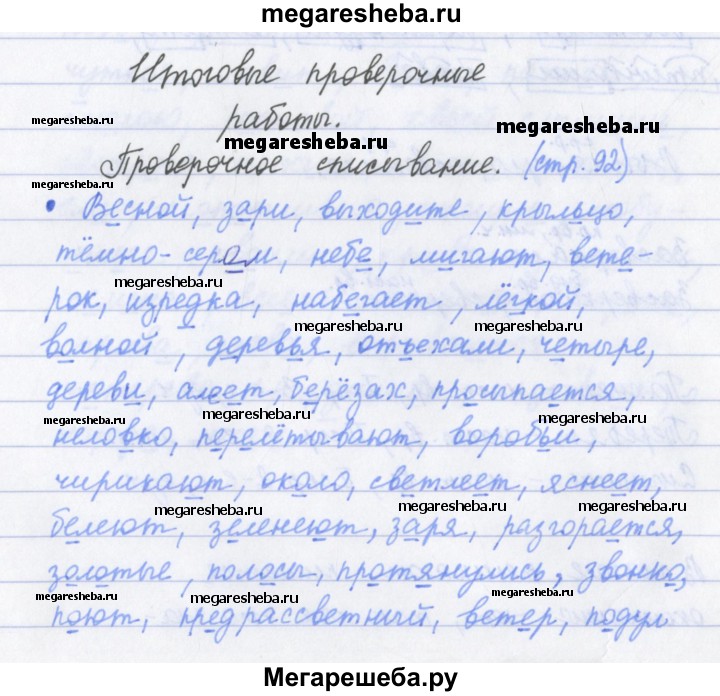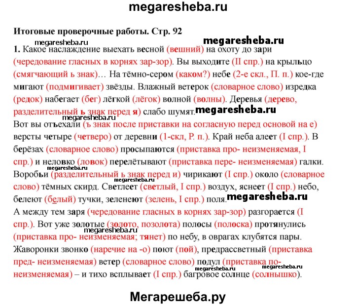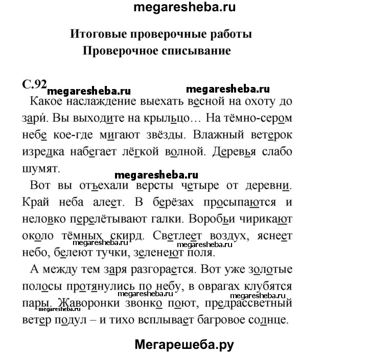 Подробный решебник (ГДЗ) по Русскому языку за 4 (четвертый) класс проверочные работы - готовый ответ страница - 92. Авторы учебника: Канакина. Издательство: Просвещение 2017-2023.