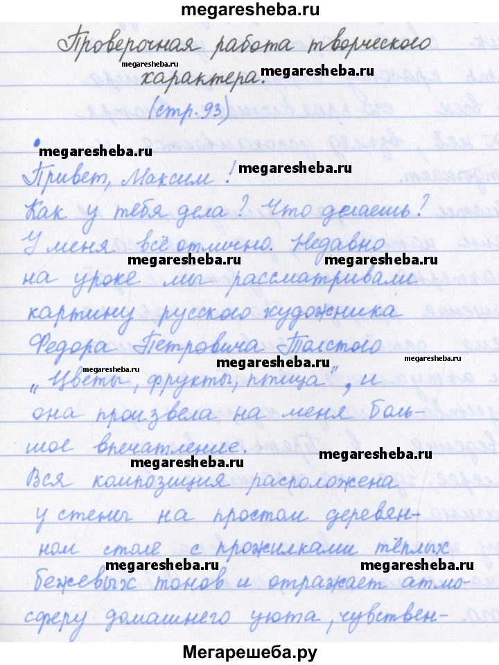 Подробный решебник (ГДЗ) по Русскому языку за 4 (четвертый) класс проверочные работы - готовый ответ страница - 93. Авторы учебника: Канакина. Издательство: Просвещение 2017-2023.