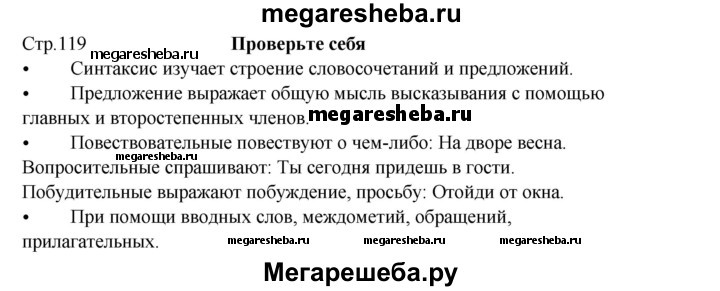 Подробный решебник (ГДЗ) по Русскому языку за 5 (пятый) класс - готовый ответ вопросы - 119. Авторы учебника: Быстрова, Александрова, Семенова. Издательство: Дрофа 2013.