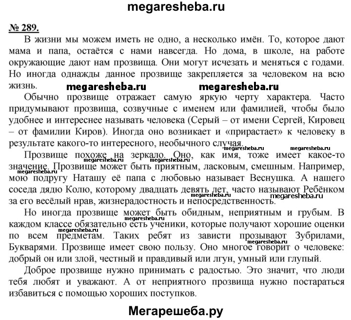 Подробный решебник (ГДЗ) по Русскому языку за 5 (пятый) класс - готовый ответ упражнение - 289. Авторы учебника: Быстрова, Александрова, Семенова. Издательство: Дрофа 2013.