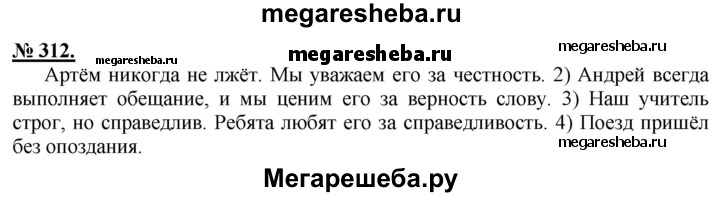 Подробный решебник (ГДЗ) по Русскому языку за 5 (пятый) класс - готовый ответ упражнение - 312. Авторы учебника: Быстрова, Александрова, Семенова. Издательство: Дрофа 2013.