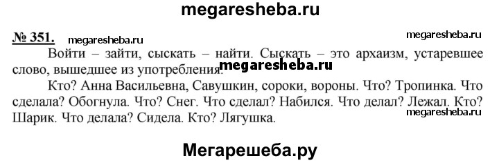 Подробный решебник (ГДЗ) по Русскому языку за 5 (пятый) класс - готовый ответ упражнение - 351. Авторы учебника: Быстрова, Александрова, Семенова. Издательство: Дрофа 2013.