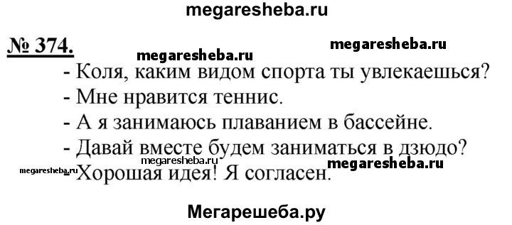 Подробный решебник (ГДЗ) по Русскому языку за 5 (пятый) класс - готовый ответ упражнение - 374. Авторы учебника: Быстрова, Александрова, Семенова. Издательство: Дрофа 2013.