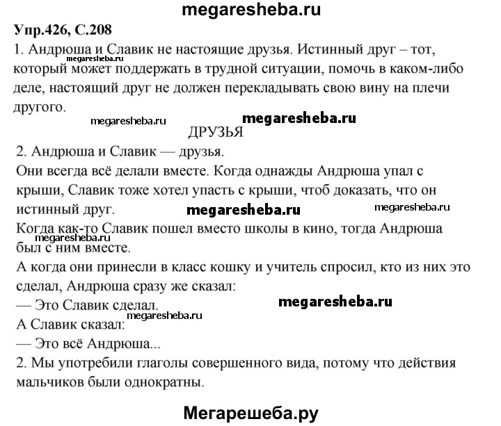 Подробный решебник (ГДЗ) по Русскому языку за 5 (пятый) класс - готовый ответ упражнение - 426. Авторы учебника: Быстрова, Александрова, Семенова. Издательство: Дрофа 2013.