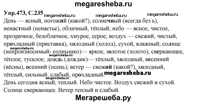 Подробный решебник (ГДЗ) по Русскому языку за 5 (пятый) класс - готовый ответ упражнение - 473. Авторы учебника: Быстрова, Александрова, Семенова. Издательство: Дрофа 2013.