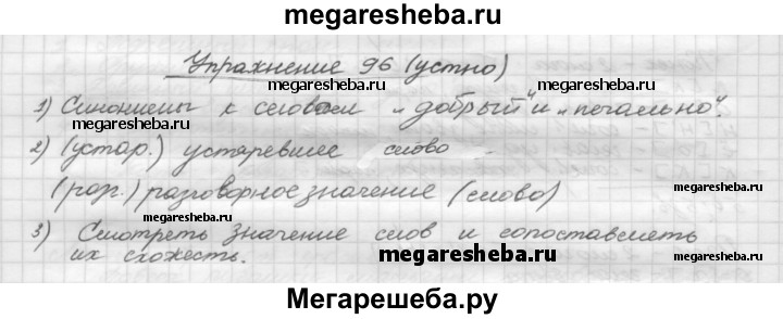 Подробный решебник (ГДЗ) по Русскому языку за 5 (пятый) класс - готовый ответ упражнение - 96. Авторы учебника: Бунеев, Бунеева, Комиссарова, Текучева. Издательство: Баласс 2016.