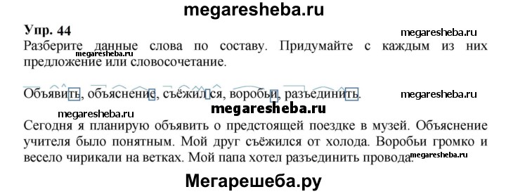Подробный решебник (ГДЗ) по Русскому языку за 5 (пятый) класс рабочая тетрадь - готовый ответ упражнение - 44. Авторы учебника: Ларионова. Издательство: Дрофа 2017-2023.
