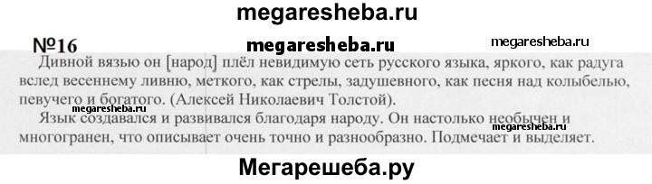 Подробный решебник (ГДЗ) по Русскому языку за 5 (пятый) класс - готовый ответ упражнение - 16. Авторы учебника: Разумовская, Львова, Капинос. Издательство: Дрофа 2015-2023.