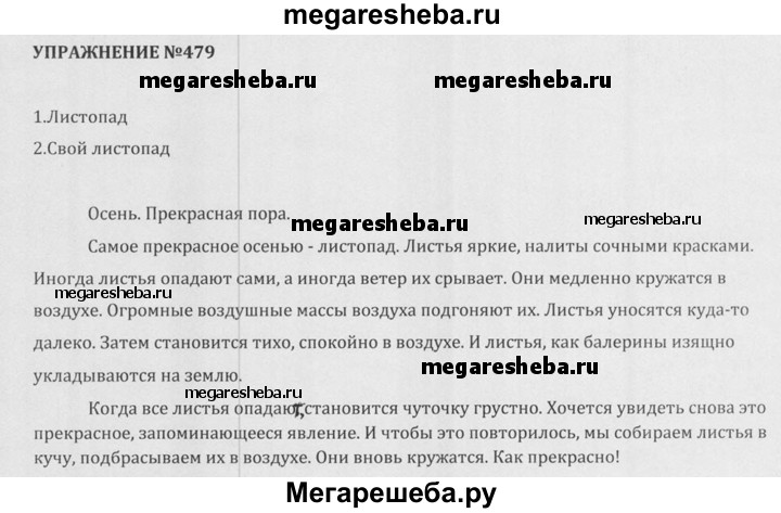 Подробный решебник (ГДЗ) по Русскому языку за 5 (пятый) класс - готовый ответ упражнение - 479. Авторы учебника: Разумовская, Львова, Капинос. Издательство: Дрофа 2015-2023.