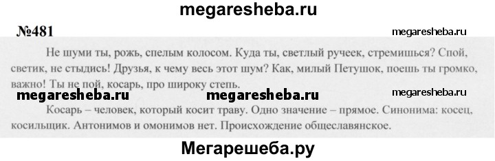 ГДЗ по русскому языку 5 класс Разумовская упражнение - 481