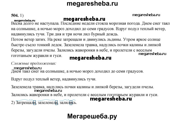 Подробный решебник (ГДЗ) по Русскому языку за 5 (пятый) класс - готовый ответ упражнение - 504. Авторы учебника: Разумовская, Львова, Капинос. Издательство: Дрофа 2015-2023.
