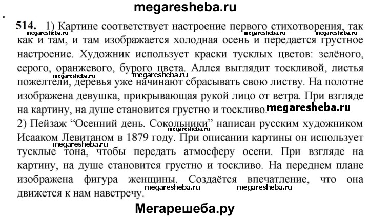 Подробный решебник (ГДЗ) по Русскому языку за 5 (пятый) класс - готовый ответ упражнение - 514. Авторы учебника: Разумовская, Львова, Капинос. Издательство: Дрофа 2015-2023.