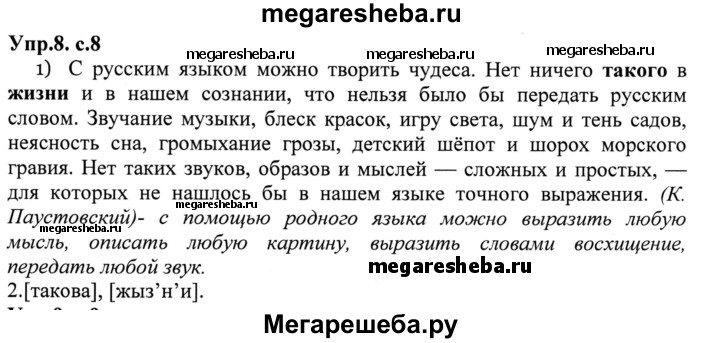 Подробный решебник (ГДЗ) по Русскому языку за 5 (пятый) класс - готовый ответ упражнение - 8. Авторы учебника: Разумовская, Львова, Капинос. Издательство: Дрофа 2015-2023.