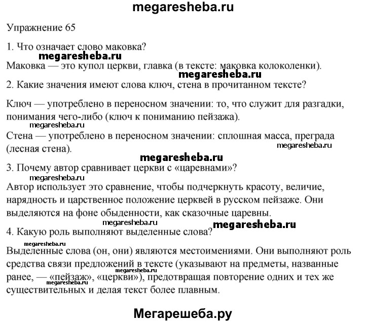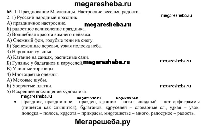 Подробный решебник (ГДЗ) по Русскому языку за 5 (пятый) класс - готовый ответ часть 1 упражнение - 65. Авторы учебника: Рыбченкова, Алесандрова, Глазков. Издательство: Просвещение 2016-2024.