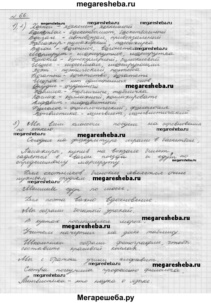 Подробный решебник (ГДЗ) по Русскому языку за 5 (пятый) класс - готовый ответ глава 1 упражнение - 66. Авторы учебника: Шмелев, Флоренская, Габович. Издательство: Вентана-граф 2016.