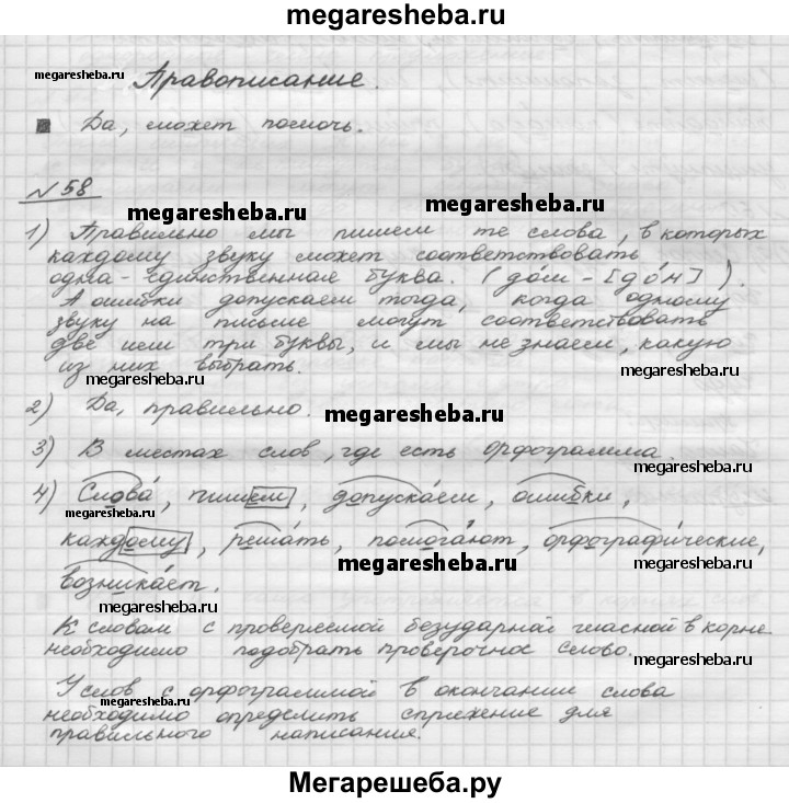 Подробный решебник (ГДЗ) по Русскому языку за 5 (пятый) класс - готовый ответ глава 2 упражнение - 58. Авторы учебника: Шмелев, Флоренская, Габович. Издательство: Вентана-граф 2016.