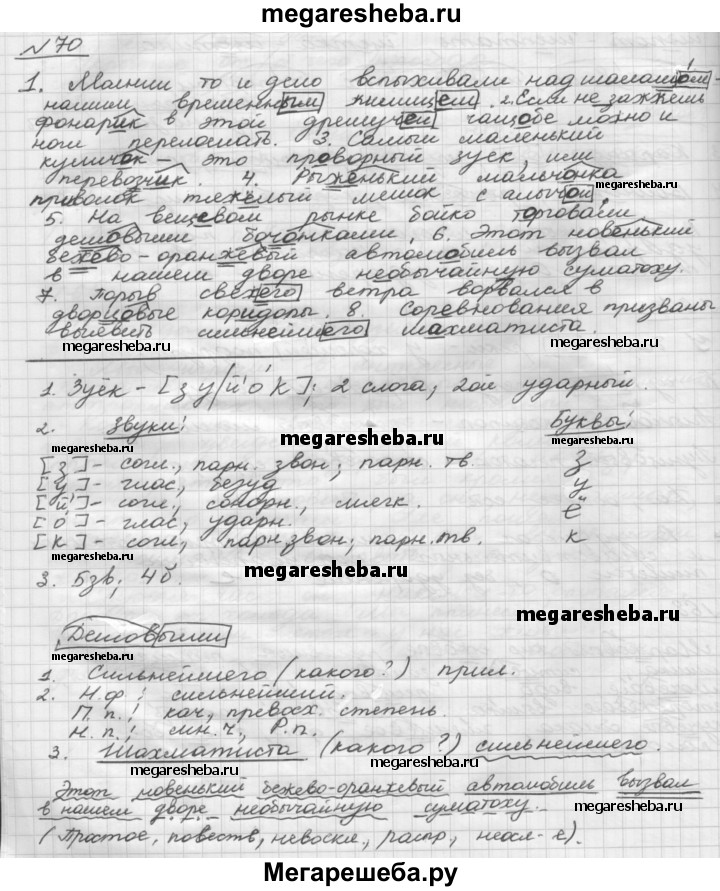 Подробный решебник (ГДЗ) по Русскому языку за 5 (пятый) класс - готовый ответ глава 7 упражнение - 70. Авторы учебника: Шмелев, Флоренская, Габович. Издательство: Вентана-граф 2016.