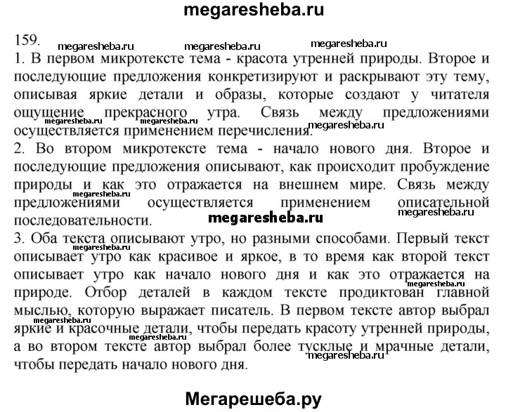 Подробный решебник (ГДЗ) по Русскому языку за 6 (шестой) класс - готовый ответ упражнение - 159. Авторы учебника: Александрова, Загоровская, Богданов. Издательство: Просвещение 2020-2023.