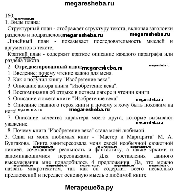 Подробный решебник (ГДЗ) по Русскому языку за 6 (шестой) класс - готовый ответ упражнение - 160. Авторы учебника: Александрова, Загоровская, Богданов. Издательство: Просвещение 2020-2023.