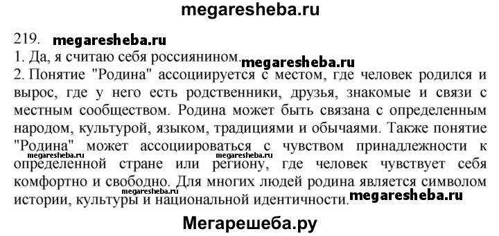Подробный решебник (ГДЗ) по Русскому языку за 6 (шестой) класс - готовый ответ упражнение - 219. Авторы учебника: Александрова, Загоровская, Богданов. Издательство: Просвещение 2020-2023.