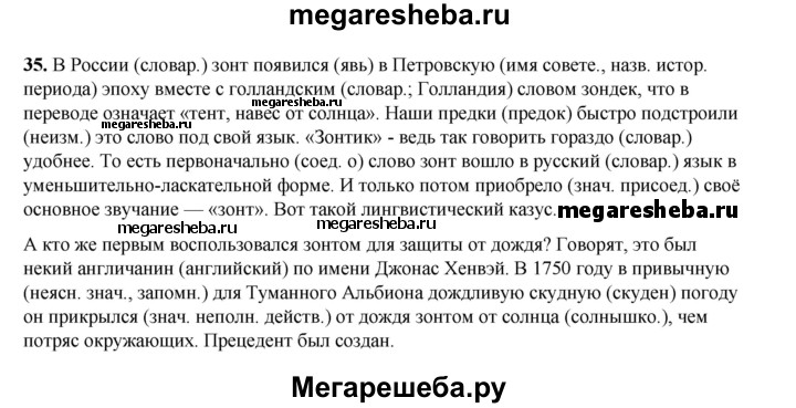 Подробный решебник (ГДЗ) по Русскому языку за 6 (шестой) класс - готовый ответ упражнение - 35. Авторы учебника: Александрова, Загоровская, Богданов. Издательство: Просвещение 2020-2023.