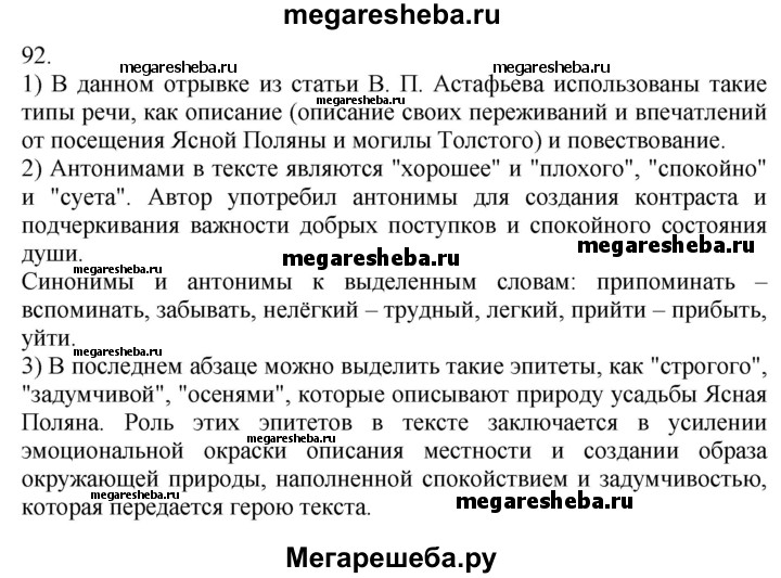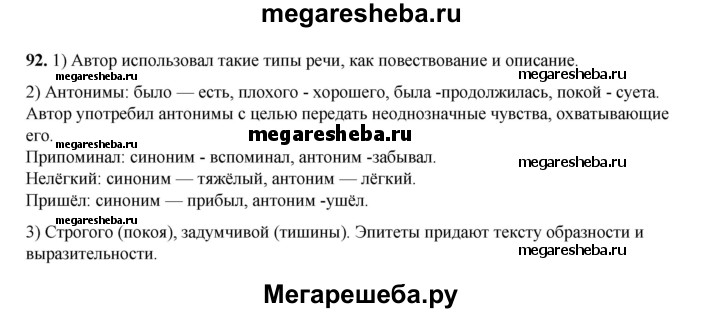 Подробный решебник (ГДЗ) по Русскому языку за 6 (шестой) класс - готовый ответ упражнение - 92. Авторы учебника: Александрова, Загоровская, Богданов. Издательство: Просвещение 2020-2023.