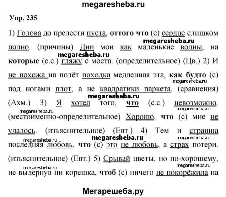 Подробный решебник (ГДЗ) по Русскому языку за 9 (девятый) класс - готовый ответ упражнение - 235. Авторы учебника: Бархударов, Крючков, Максимов, Чешко. Издательство: Просвещение 2015-2025.