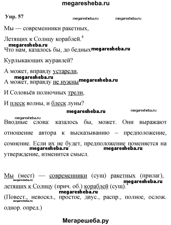 Подробный решебник (ГДЗ) по Русскому языку за 9 (девятый) класс - готовый ответ упражнение - 57. Авторы учебника: Бархударов, Крючков, Максимов, Чешко. Издательство: Просвещение 2015-2025.