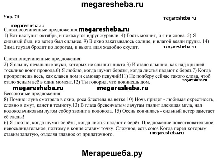Подробный решебник (ГДЗ) по Русскому языку за 9 (девятый) класс - готовый ответ упражнение - 73. Авторы учебника: Бархударов, Крючков, Максимов, Чешко. Издательство: Просвещение 2015-2025.