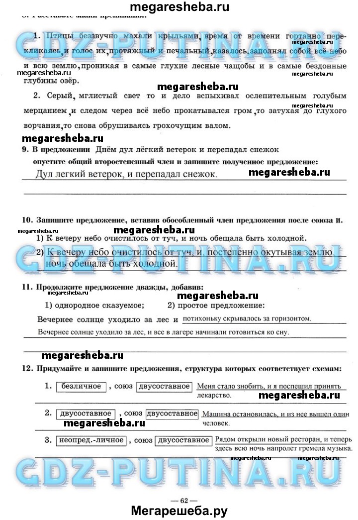 Подробный решебник (ГДЗ) по Русскому языку за 9 (девятый) класс рабочая тетрадь - готовый ответ страница Часть 1 - 62. Авторы учебника: Богданова. Издательство: Генжер 2017.