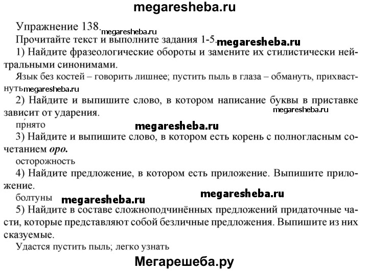 ГДЗ по русскому языку 9 класс Шмелев глава 1 - 138