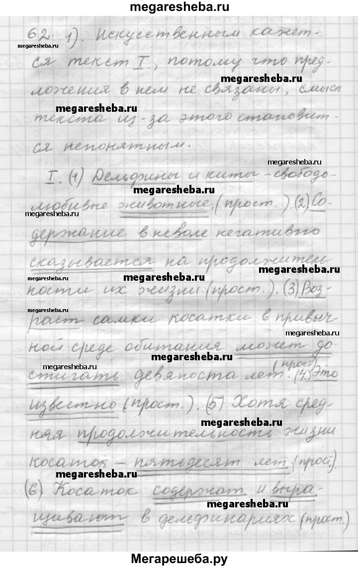 Подробный решебник (ГДЗ) по Русскому языку за 9 (девятый) класс - готовый ответ глава 1 - 62. Авторы учебника: Шмелев, Флоренская, Митюрев. Издательство: Вентана-граф 2016.