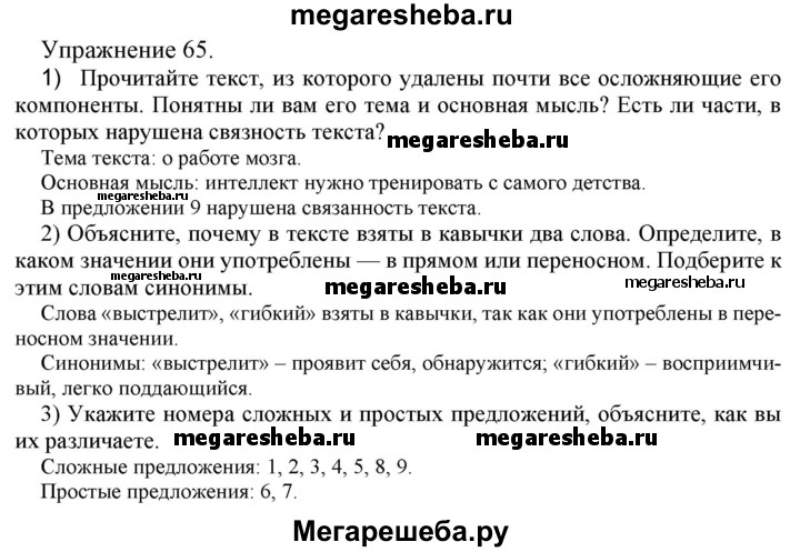 Подробный решебник (ГДЗ) по Русскому языку за 9 (девятый) класс - готовый ответ глава 1 - 65. Авторы учебника: Шмелев, Флоренская, Митюрев. Издательство: Вентана-граф 2016.