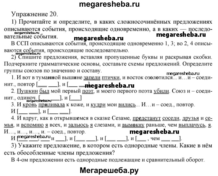 Подробный решебник (ГДЗ) по Русскому языку за 9 (девятый) класс - готовый ответ глава 2 - 20. Авторы учебника: Шмелев, Флоренская, Митюрев. Издательство: Вентана-граф 2016.