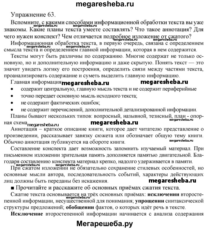 Подробный решебник (ГДЗ) по Русскому языку за 9 (девятый) класс - готовый ответ глава 2 - 63. Авторы учебника: Шмелев, Флоренская, Митюрев. Издательство: Вентана-граф 2016.