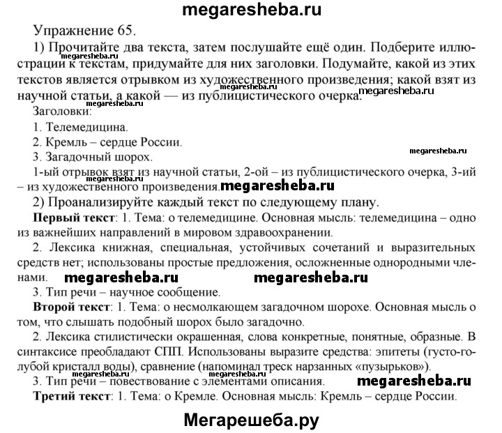 Подробный решебник (ГДЗ) по Русскому языку за 9 (девятый) класс - готовый ответ глава 2 - 65. Авторы учебника: Шмелев, Флоренская, Митюрев. Издательство: Вентана-граф 2016.