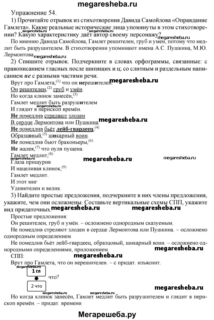 Подробный решебник (ГДЗ) по Русскому языку за 9 (девятый) класс - готовый ответ глава 3 - 54. Авторы учебника: Шмелев, Флоренская, Митюрев. Издательство: Вентана-граф 2016.