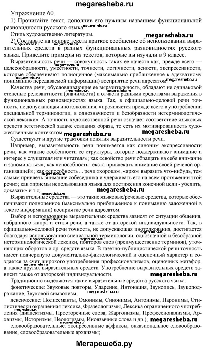 Подробный решебник (ГДЗ) по Русскому языку за 9 (девятый) класс - готовый ответ глава 4 - 60. Авторы учебника: Шмелев, Флоренская, Митюрев. Издательство: Вентана-граф 2016.