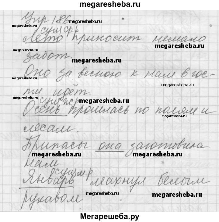 Подробный решебник (ГДЗ) по Русскому языку за 5 (пятый) класс Для обучающихся с интеллектуальными нарушениями - готовый ответ упражнение - 186. Авторы учебника: Якубовская, Галунчикова. Издательство: Просвещение 2014-2020.