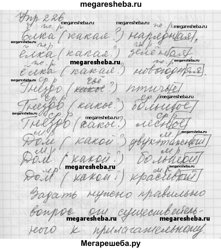 Подробный решебник (ГДЗ) по Русскому языку за 5 (пятый) класс Для обучающихся с интеллектуальными нарушениями - готовый ответ упражнение - 226. Авторы учебника: Якубовская, Галунчикова. Издательство: Просвещение 2014-2020.