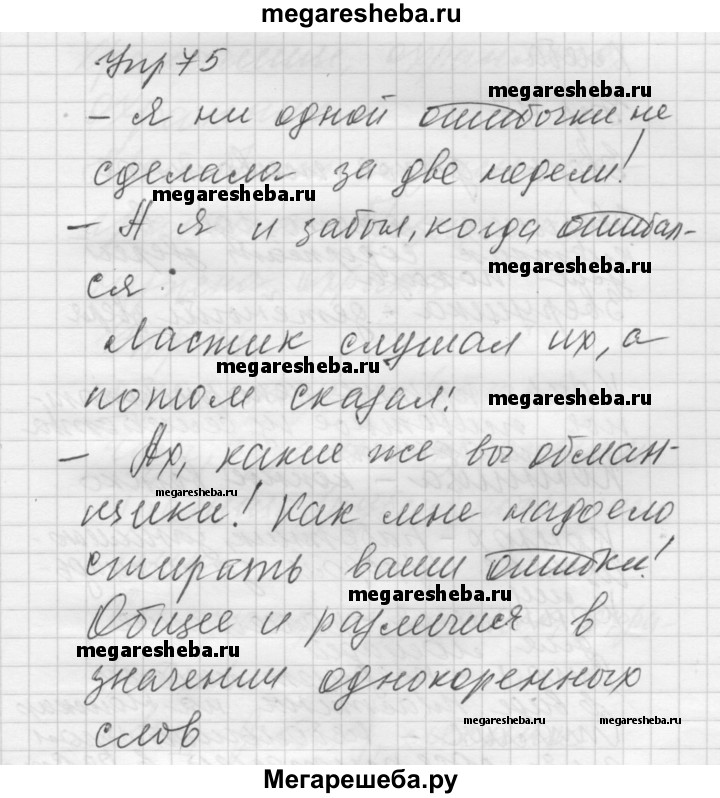 Подробный решебник (ГДЗ) по Русскому языку за 5 (пятый) класс Для обучающихся с интеллектуальными нарушениями - готовый ответ упражнение - 75. Авторы учебника: Якубовская, Галунчикова. Издательство: Просвещение 2014-2020.
