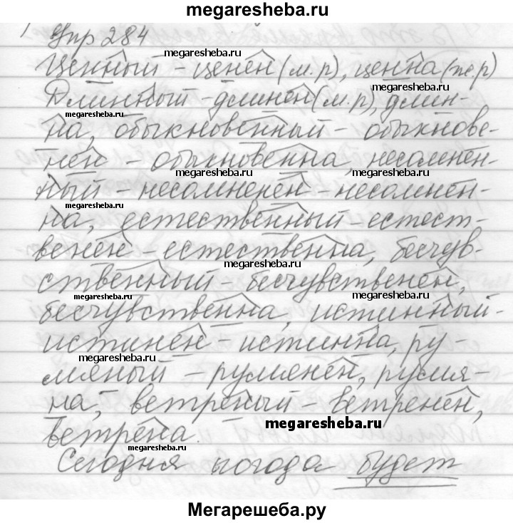 Подробный решебник (ГДЗ) по Русскому языку за 6 (шестой) класс - готовый ответ упражнение - 284. Авторы учебника: Бунеев, Бунеева, Комиссарова. Издательство: Баласс 2014.