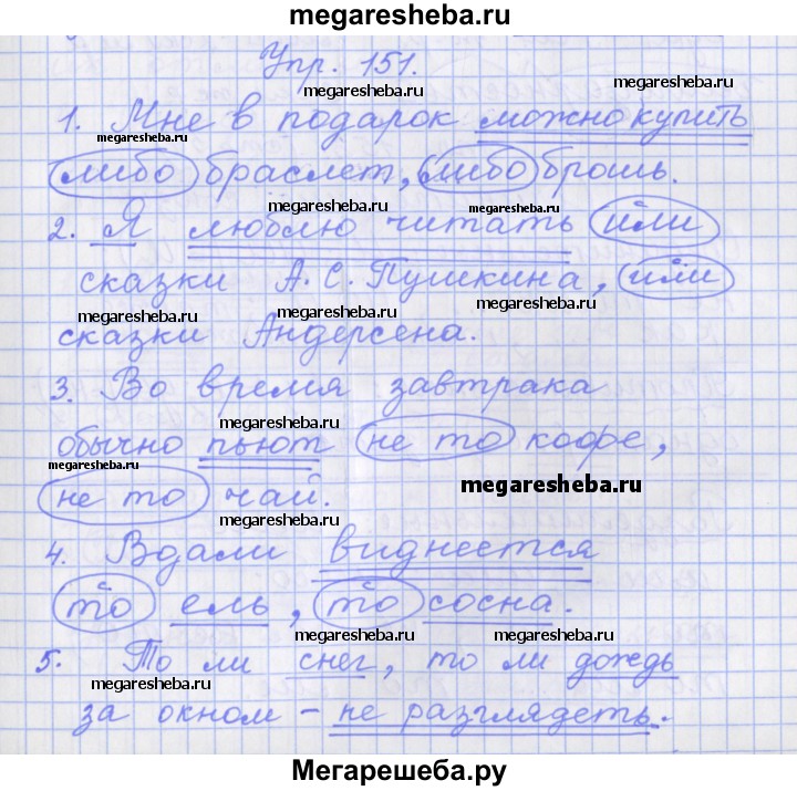 Подробный решебник (ГДЗ) по Русскому языку за 7 (седьмой) класс рабочая тетрадь - готовый ответ задание - 151. Авторы учебника: Бабайцева, Сергиенко, Углубленный уровень. Издательство: Дрофа 2017.