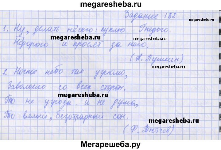 Подробный решебник (ГДЗ) по Русскому языку за 7 (седьмой) класс рабочая тетрадь - готовый ответ задание - 182. Авторы учебника: Бабайцева, Сергиенко, Углубленный уровень. Издательство: Дрофа 2017.