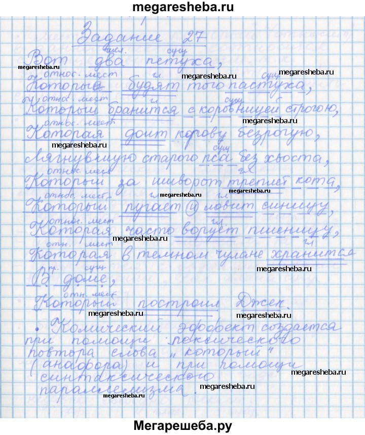 Подробный решебник (ГДЗ) по Русскому языку за 7 (седьмой) класс рабочая тетрадь - готовый ответ задание - 27. Авторы учебника: Бабайцева, Сергиенко, Углубленный уровень. Издательство: Дрофа 2017.