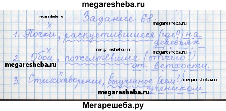 Подробный решебник (ГДЗ) по Русскому языку за 7 (седьмой) класс рабочая тетрадь - готовый ответ задание - 68. Авторы учебника: Бабайцева, Сергиенко, Углубленный уровень. Издательство: Дрофа 2017.