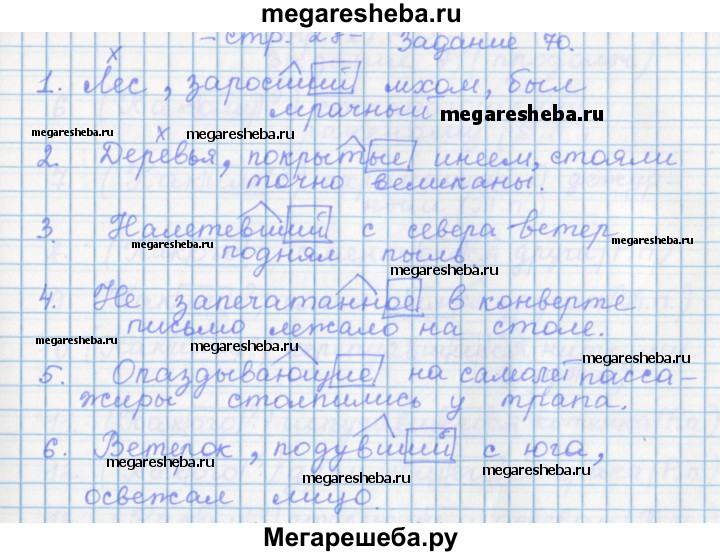 Подробный решебник (ГДЗ) по Русскому языку за 7 (седьмой) класс рабочая тетрадь - готовый ответ задание - 70. Авторы учебника: Бабайцева, Сергиенко, Углубленный уровень. Издательство: Дрофа 2017.
