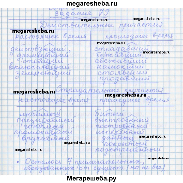 Подробный решебник (ГДЗ) по Русскому языку за 7 (седьмой) класс рабочая тетрадь - готовый ответ задание - 79. Авторы учебника: Бабайцева, Сергиенко, Углубленный уровень. Издательство: Дрофа 2017.